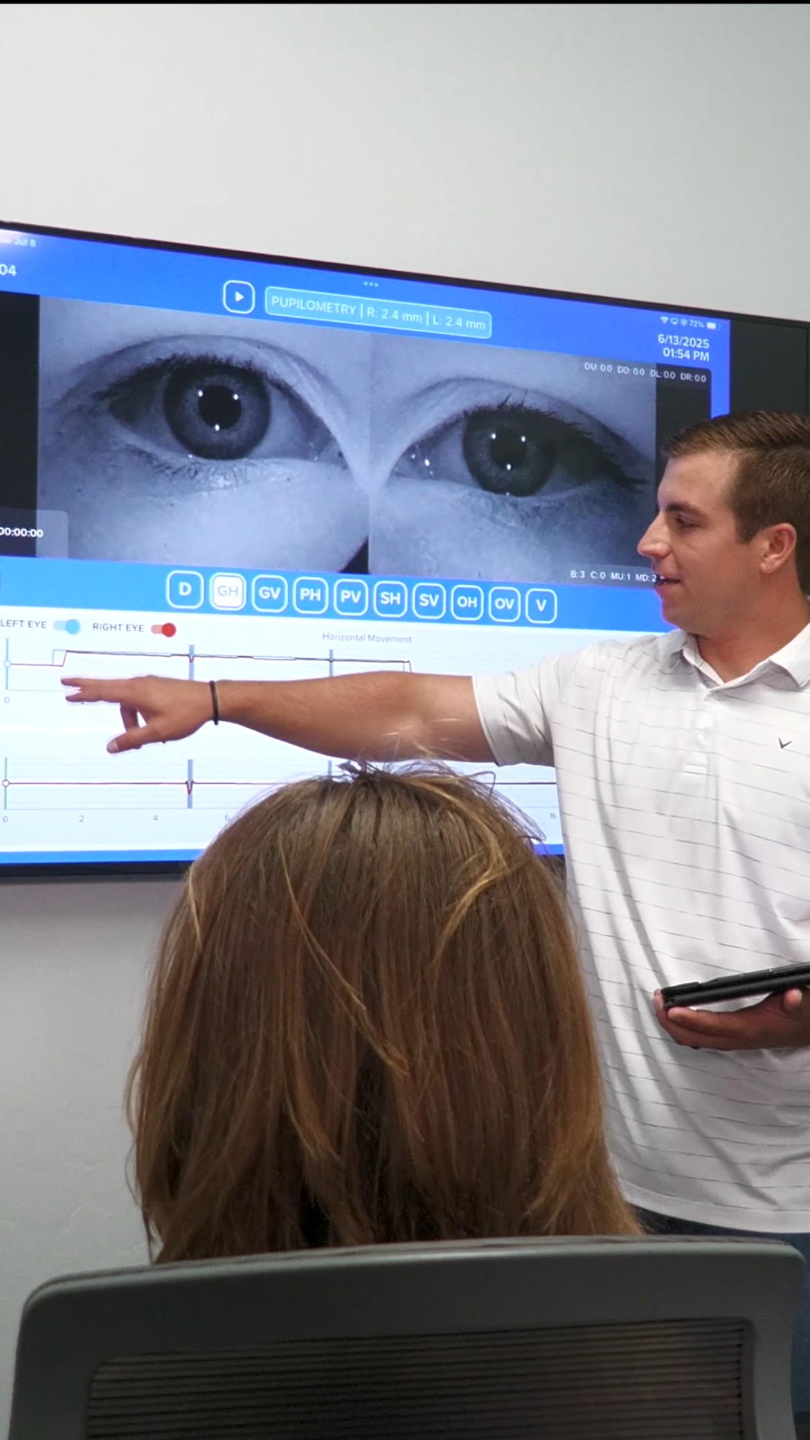 Videonystagmography (VNG) is the use of our VR system that has Infared sensors which trace your eyes and allow us to see brain activity based on 10 different tests. We are able to assess dysfunctional brain pathways and rehab them accordingly.